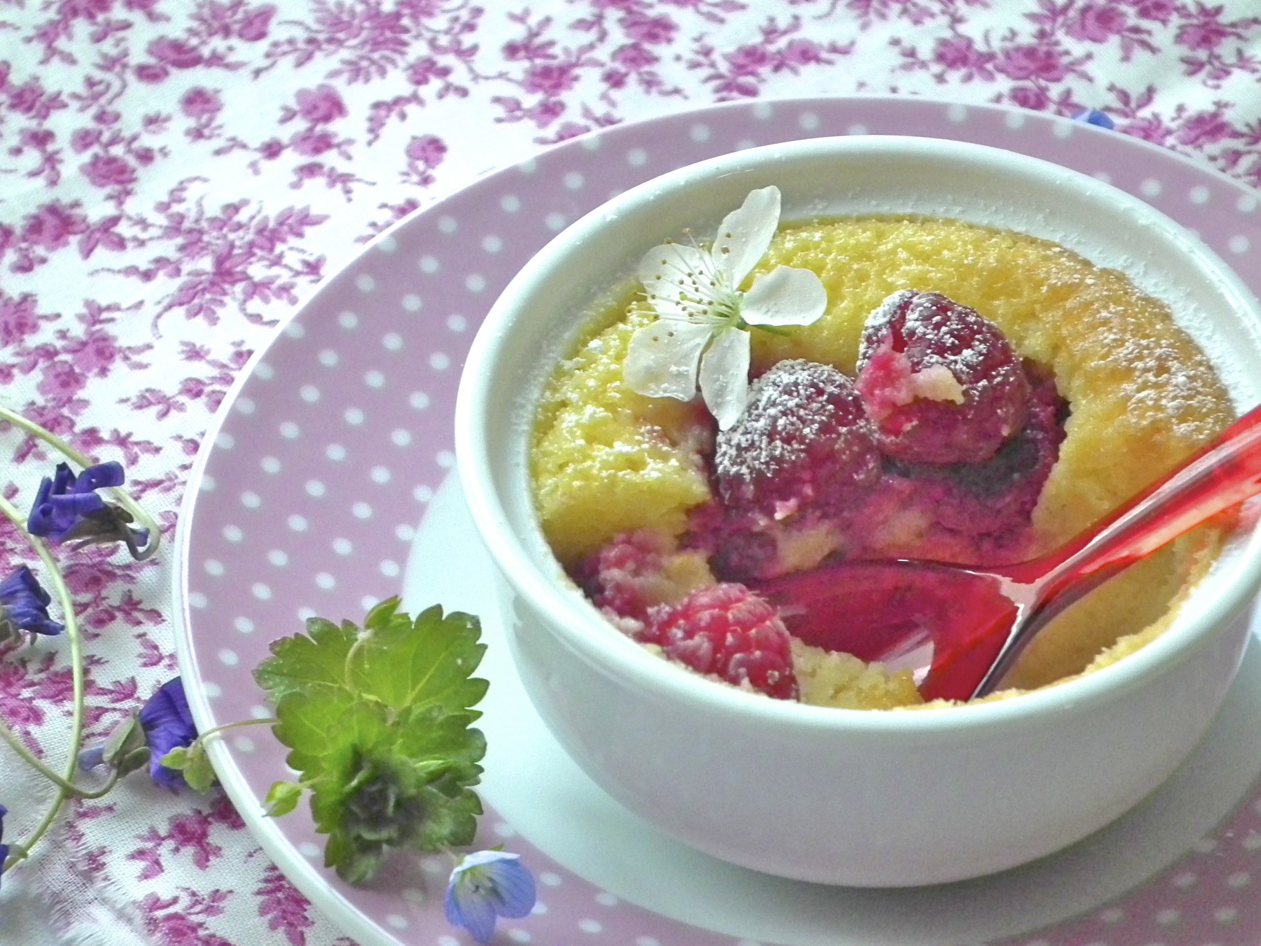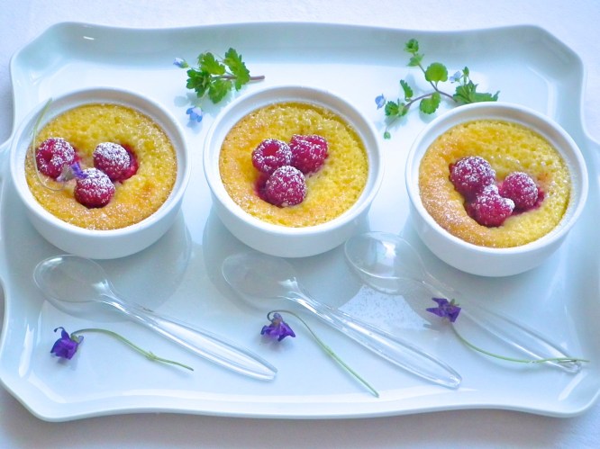 Préchauffer le four à 170°C. Beurrez 6 petits ramequins, puis deposez-y les famboises (gardez quelque belles framboises pour la décoration finale).