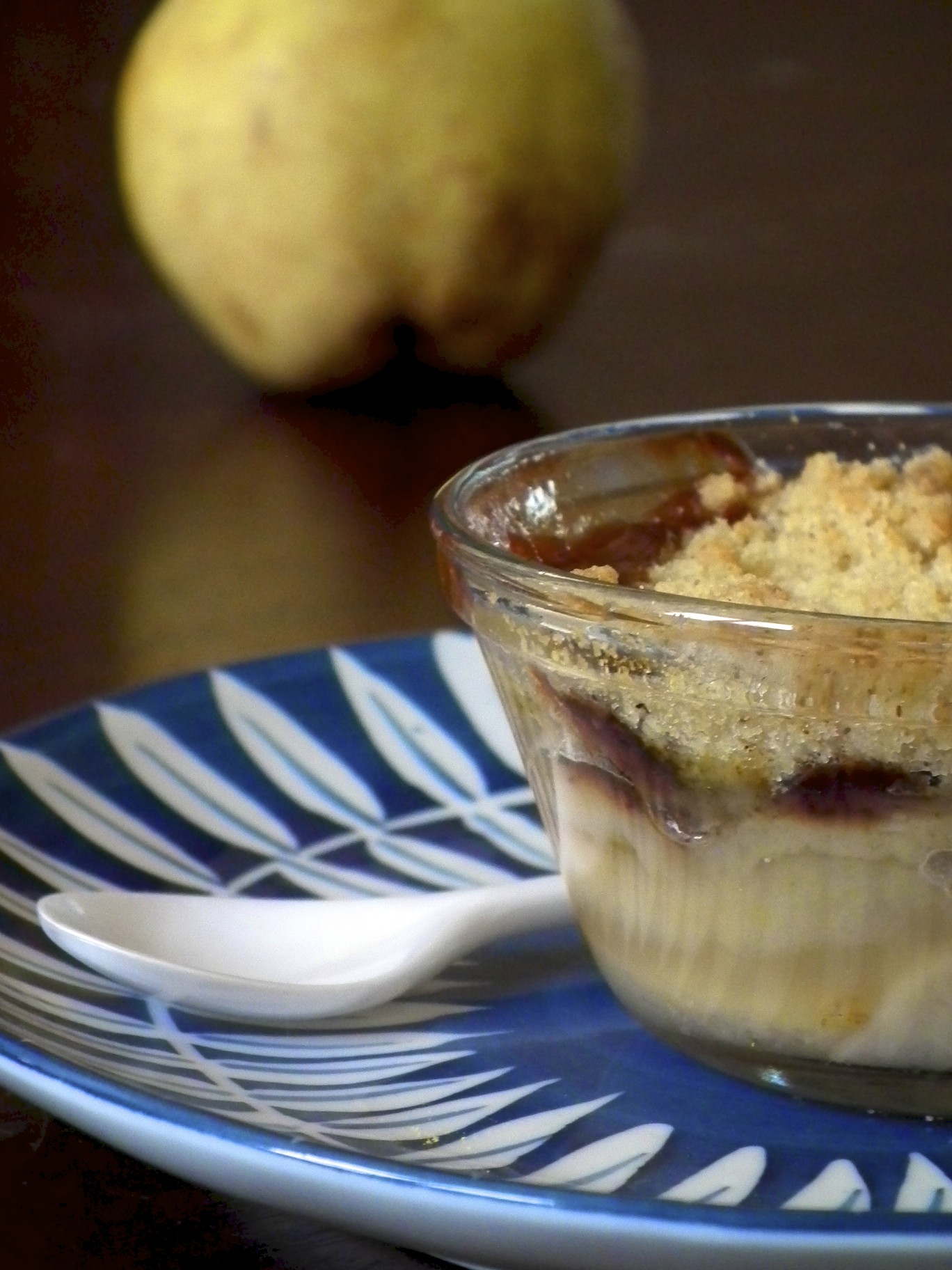 Crumble de poire au chocolat et à la fève tonka