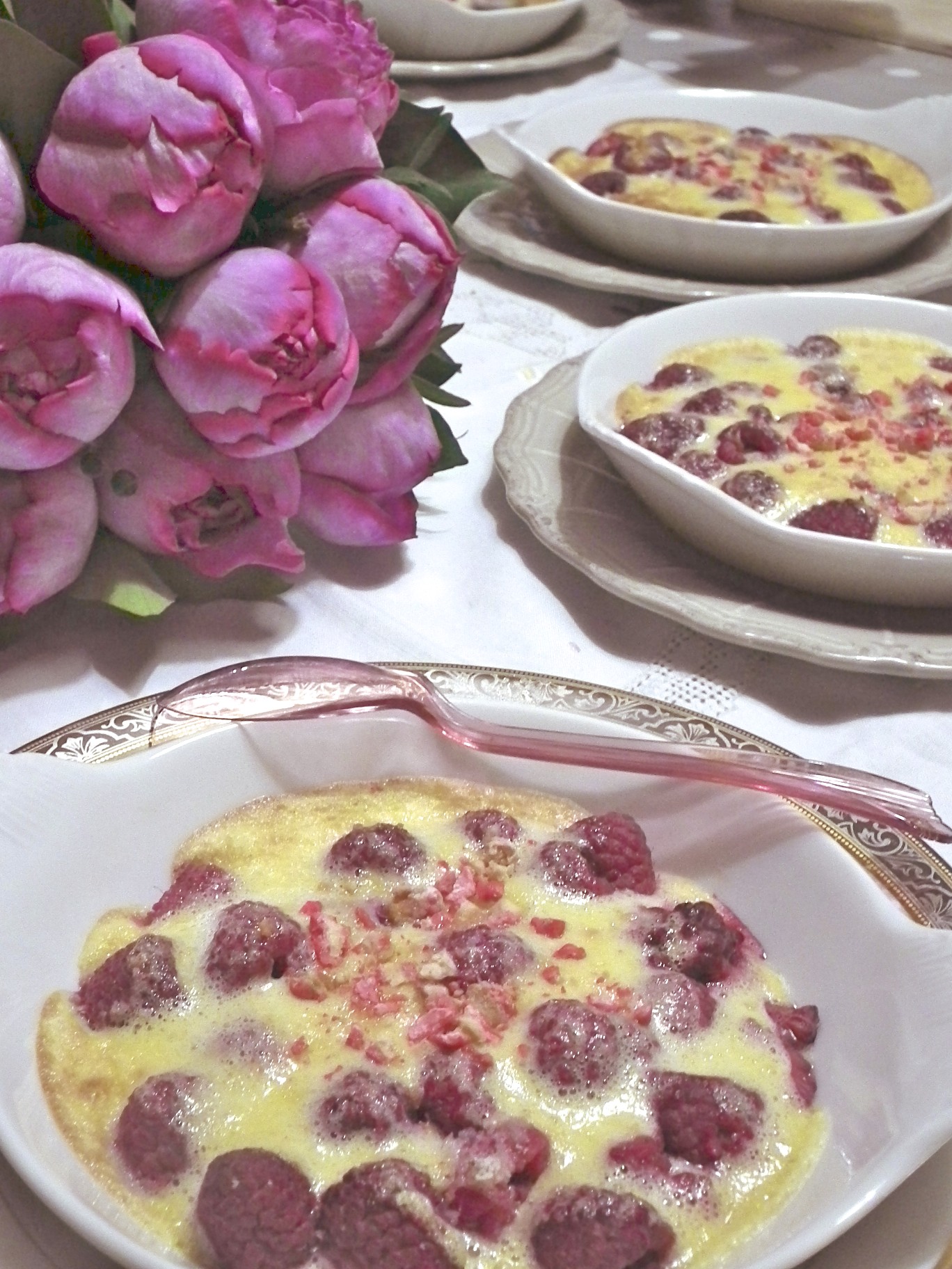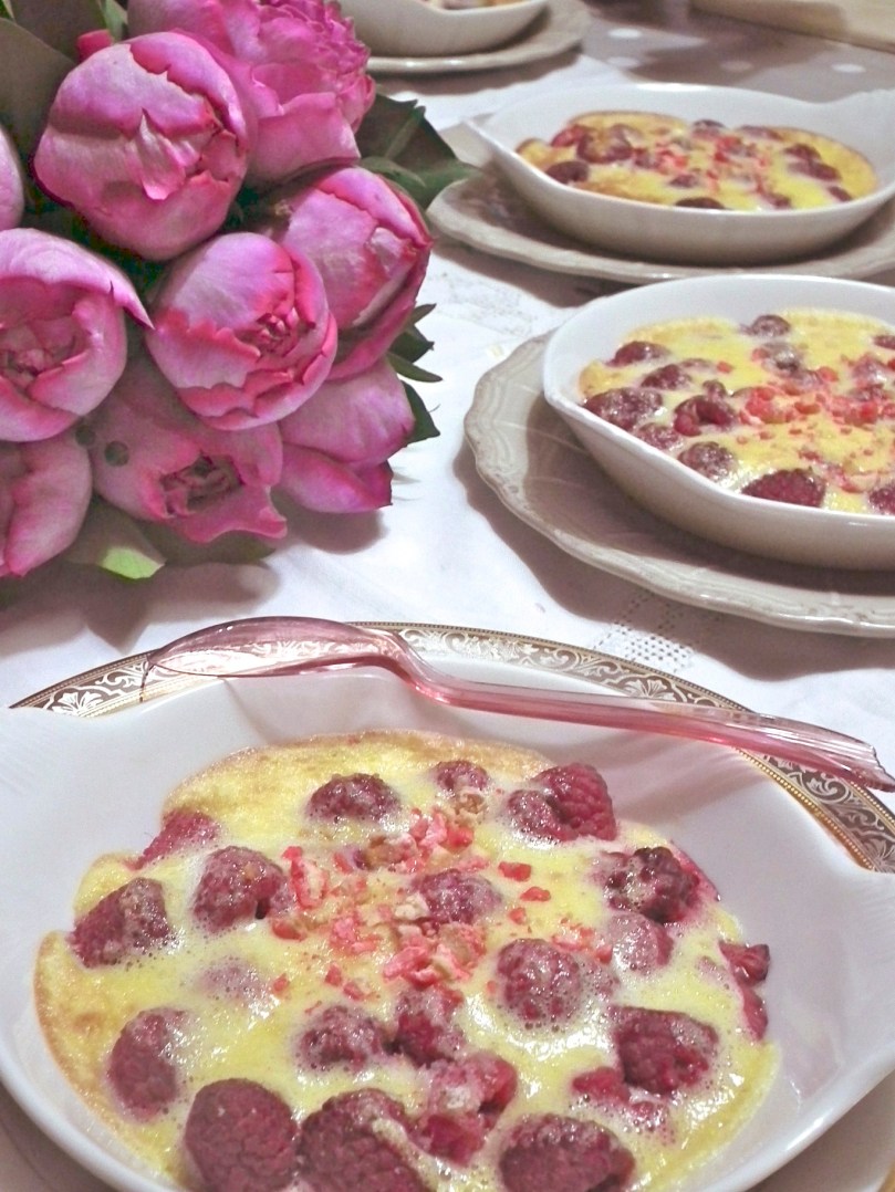 Répartissez les framboises dans six petits plats à gratin, réservez.