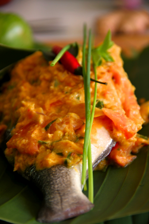 Curry de dorade en papillote de feuille de bananier