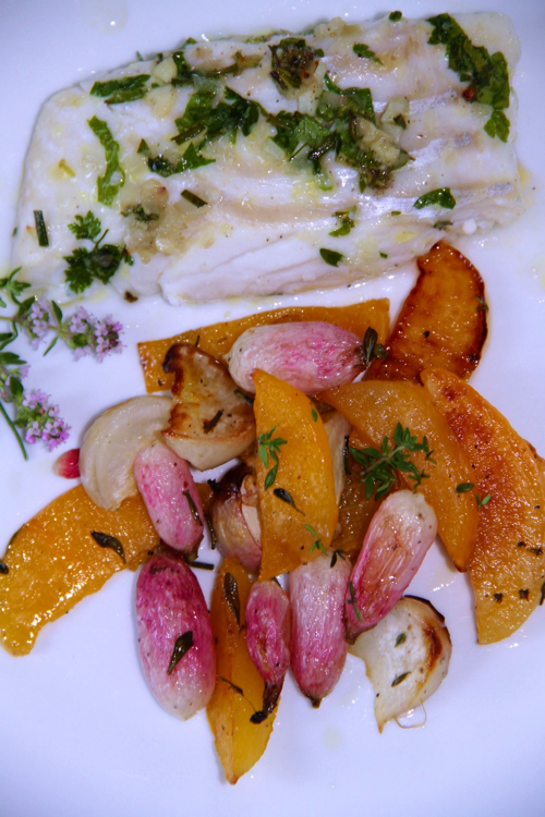 Velouté de topinambours et poireaux à l’huile de truffe blanche et au greuil