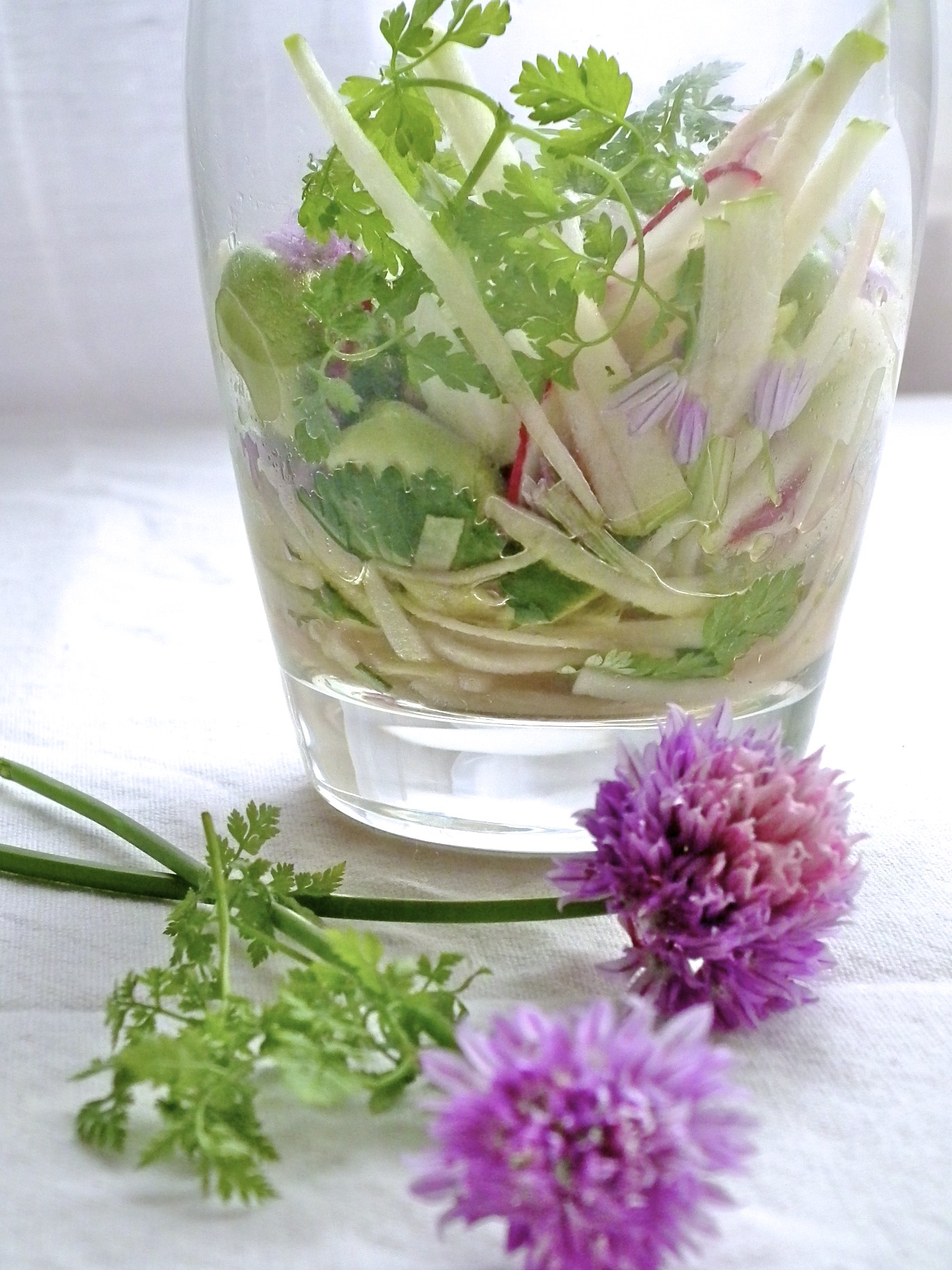 Tante Hanny habitait dans le petit village de Gelnhausen, à mi-chemin entre Francfort et Fulda. Derrière sa maison, son jardin menait directement à la forêt. Un bol à la main, elle m’invitait à arpenter son jardin à la recherche d’herbes aromatiques, de salades et autres plantes sauvages. Nous communiquions dans une langue étrange, mélange de Français, d’Allemand et d’Anglais. La barrière de la langue n’avait aucune importance puisque c’était surtout l’appréciation des odeurs, des couleurs et du goût des plantes qui importait.
